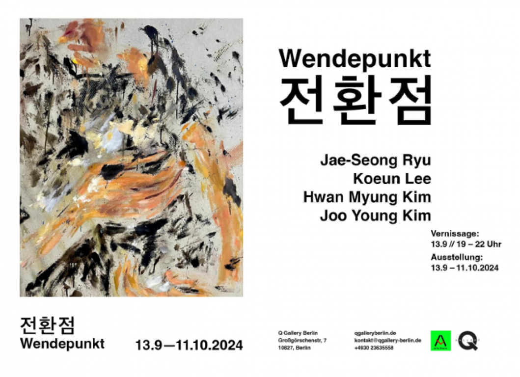 Korean Art in Focus: An exhibition of contemporary Korean artists Jae-Seong Ryu, Hwan Myung Kim, Koeun Lee and Joo Young Kim, presented by the Arta Libera Gallery and the Q Gallery Berlin. The upcoming exhibition WENDEPUNKT at Q Gallery Berlin pre