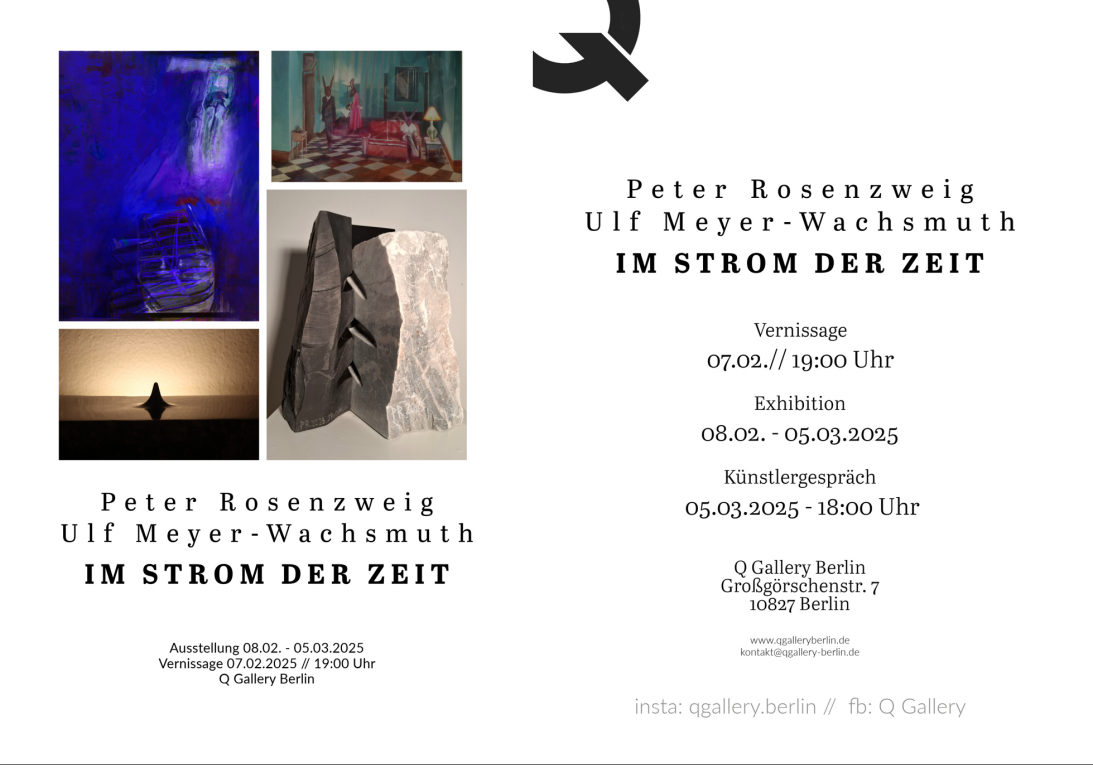 Q Gallery Berlin is delighted to present the works of sculptor Peter Rosenzweig (Berlin) and painter Ulf Meyer-Wachsmuth (Bremen). Both artists are presenting their sculptures and paintings together for the first time in an exhibition. The two art