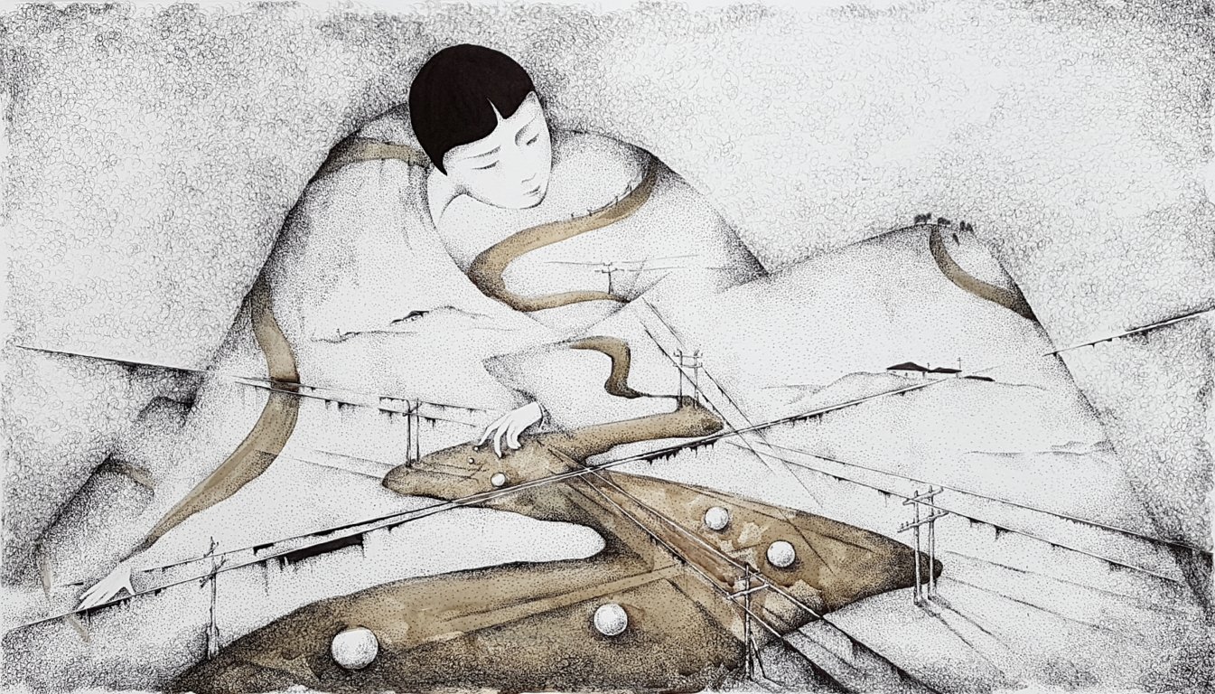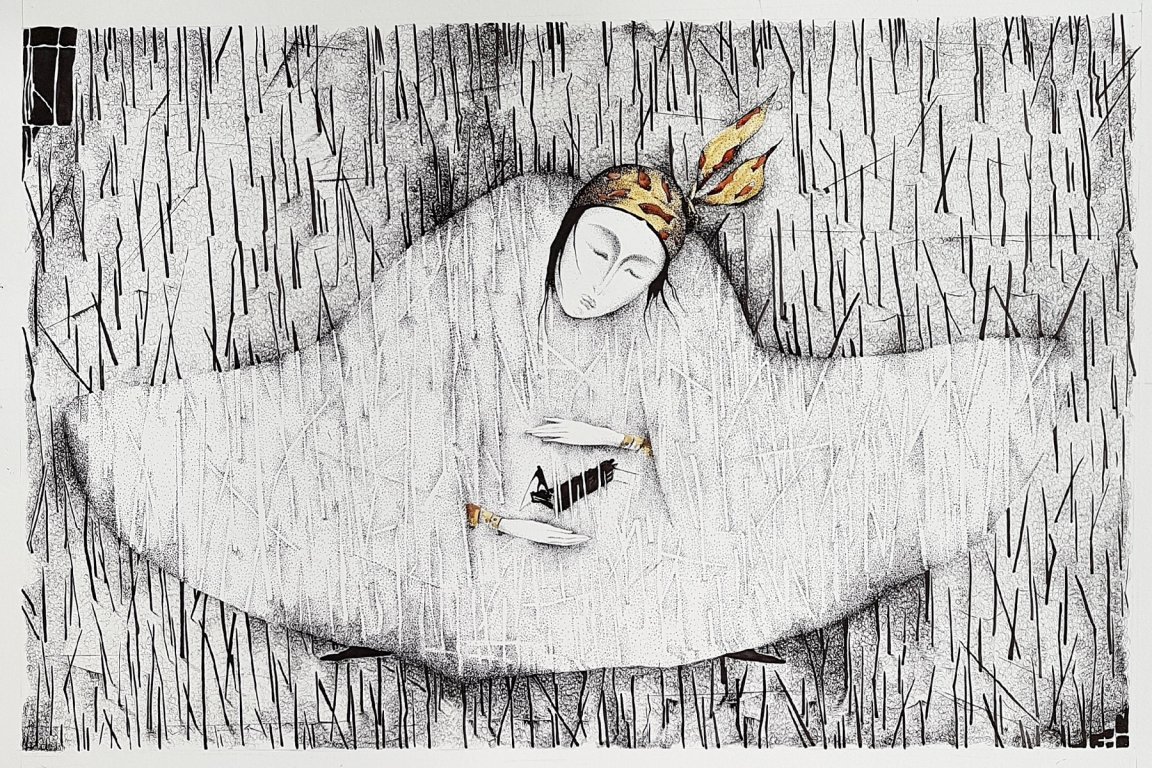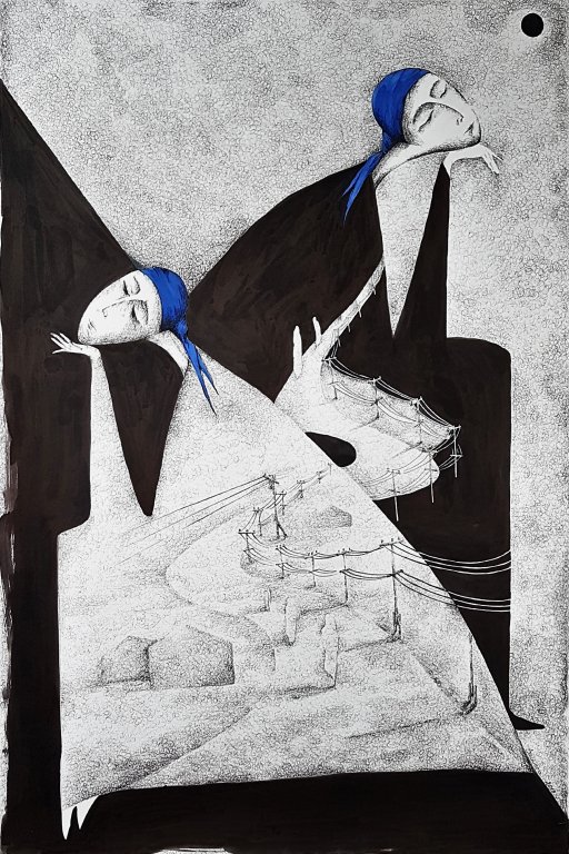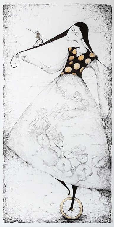 Sayyora Muin's ink drawings are outstanding by their lightness and filigree – a characteristic of her very own signature. Hovering implies the inconceivable, not tangible, transient and delicate - like soap bubbles that enclose dreams. This new series shows drawings, which are very personal, however without losing any of this lightness. Subject is, like so often in her artwork, "finding yourself". Childhood memories and longings are processed amazingly. In her mirror images, she confronts Asia and Europe, showing the different influences, which, however, also have something connecting.