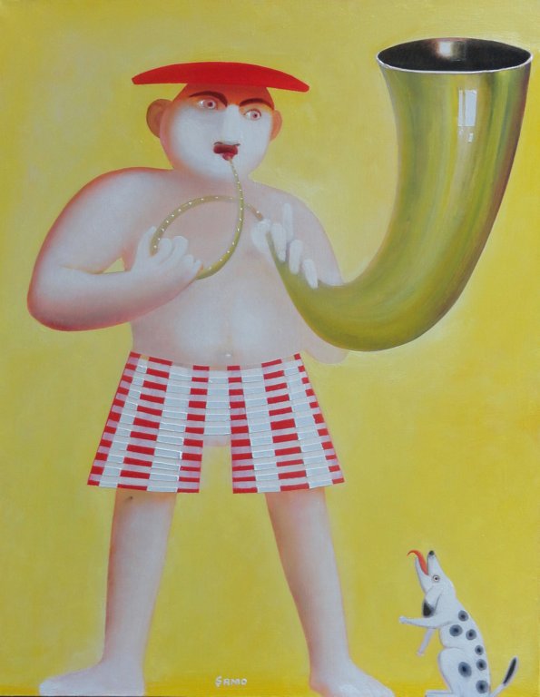 017 Pomegranates and high mountains, exhibition of the Azerbaijani artists, «Kunstation Kleinsassen» gallery, Germany 2015 solo exhibition, Azerbaijan Cultural Center, Vienna, Austria 2014 solo exhibition, Galerie Berlin-Baku, Berlin, Germany 2005 Man and Woman group exhibition, Sattar Bahlulzade Exhibition Hall, Baku, Azerbaijan 2003 November Salon, Gallery Vladislav Marzik gallery, Kraljevo, Serbia 2000 solo exhibition, Exhibition Hall of Mercy Corps, Baku, Azerbaijan 1996 Novruz international exhibition, Ankara, Turkey 1991 Baku Art Center exhibition, the UAE Cultural Center, Abu-Dhabi, United Arab Emirates 1990 Baku Art Center Exhibition, Rigas Modes gallery, Latvia 1990 Young Artists of the USSR and the GDR, Erfurt, Germany 1989 Baku Art Center Exhibition, Avignon, France 1989 XIII International Symposium on Ceramics, Prague, Czechoslovakia 1989 Baku Art Center Exhibition, Moscow Palace of Youth, Moscow, Russia 1988 XIII International Symposium on Ceramics, Karlovy Vary, Czechoslovakia 1986 USSR young artists exhibition, Manezh, Moscow, Russia 1985 XLIII International Contest on Ceramics конкурс керамики, Faenza, Italy 1983 autumn exhibition of the Leningrad artists, Manezh, Moscow, Russia Artworks by Shamo Abasov are housed in the National Art Museum of Azerbaijan, Baku; Azerbaijan State Picture Gallery, Baku; Russian Ministry of Culture, Moscow; State Tretyakov Gallery, Moscow; State Museum and Exhibition Center ROSIZO; Stieglitz Museum of Applied Arts, Saint Petersburg; South Bohemian Gallery, Czech Republic; the Azerbaijan Embassy in the USA; as well as in the private foreign collections and galleries. Shamo Abasov passed away on May 7, 2014 in Baku. Shamo – is a real Absheron artist who reveals around the world in a completely unexpected and incomprehensible ways. He is able playing the usual forms while transforming them beyond recognition, the commonness in the artist’s canvases regenerates into grotesque associative variety of symbols and hidden meanings. He has worked with ceramics and wood, which also is reflected in a certain approach while creating shapes and volumes, use of local colors in contrast as well as sonorous combination. Shamo remarkably fully experienced the uniqueness of Azerbaijani national colors in a finely captured facial features and comic situations. He is the artist with a happy creative destiny, is able to make the others happy. Shamo lived with his art, in his fragile, mysterious and tidy world with neither self-confident ambitions, nor thirst of glory. The glory has found him itself. But the world of Shamo is concentrated within the walls of his workshop. Here in the imaginations of the artist the true fair life of the artist used to live with the life absurd and farfetched outside it.